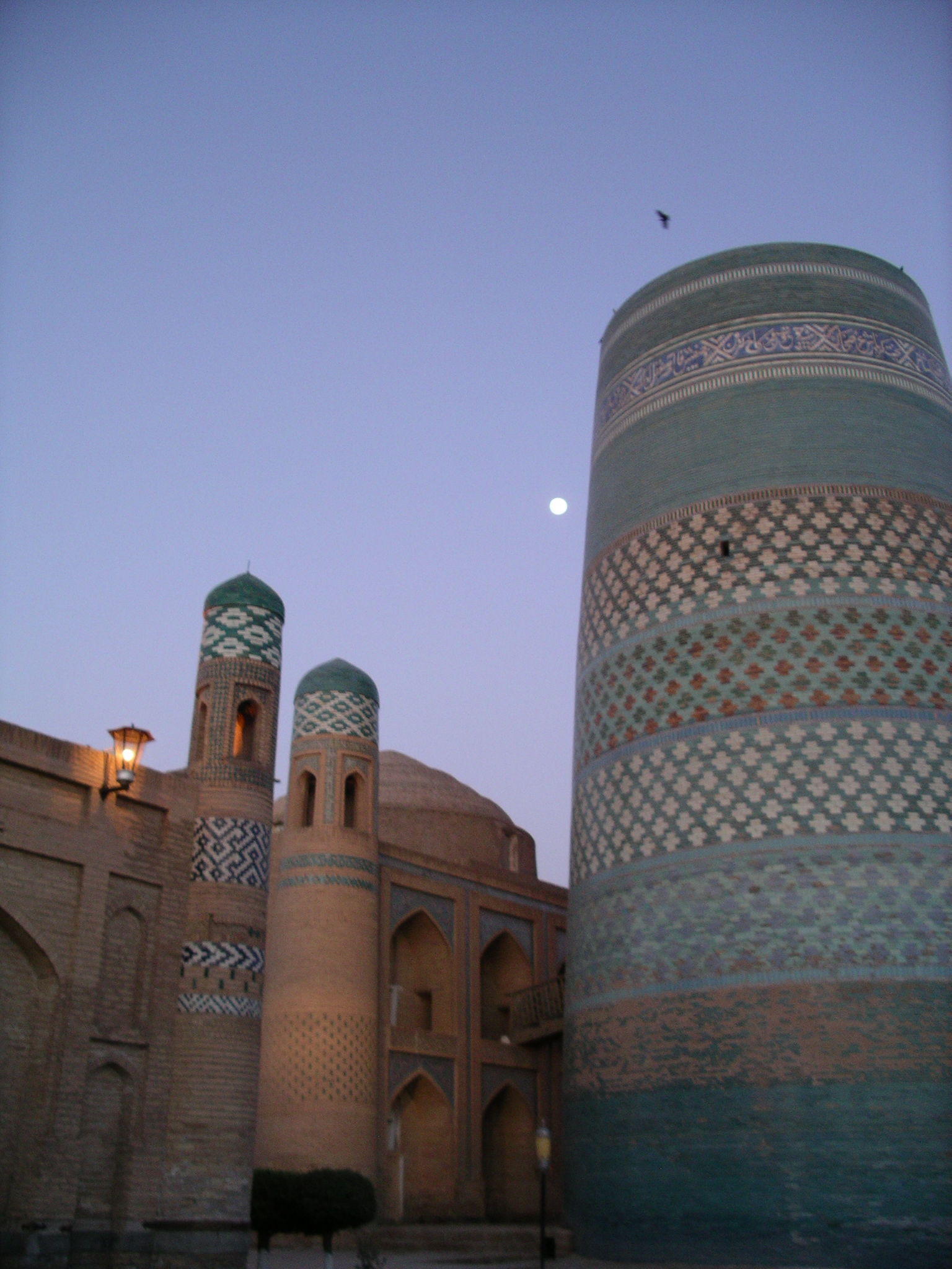 14- 2- The main street of Khiva’s Inner Fort was lined sublime in the light of the moon by the magnificently cohesive architectural ensemble of Katla minaret.
